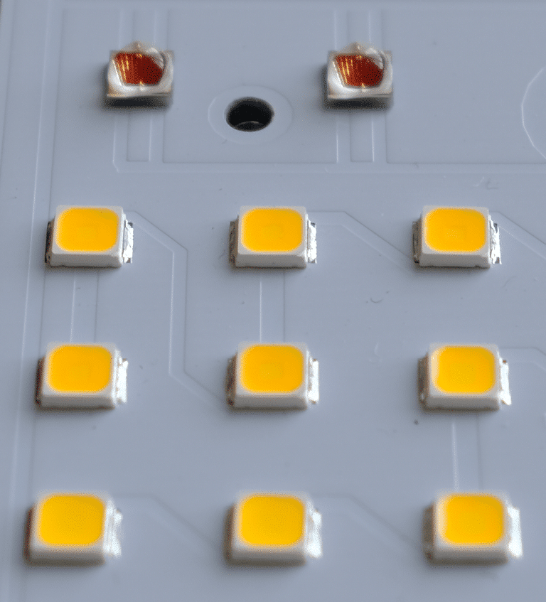 Die weiterentwickelte asymmetrische Sekundäroptik lenkt das Licht gezielt auf die Pflanzen und schützt die LEDs zuverlässig vor Wasser, Chemikalien und äußeren Einflüssen. Dadurch wird Oxidation verhindert und eine dauerhaft hohe Lichtleistung garantiert.